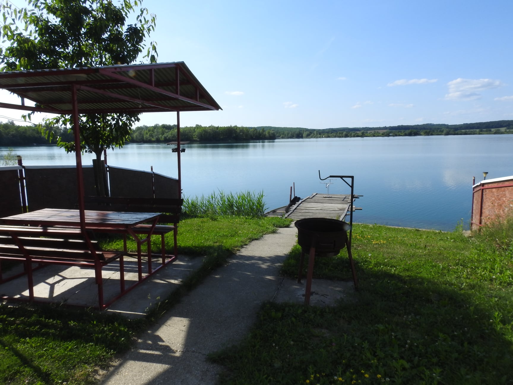 A házhoz tartozik egy 8m hosszú stég, itt 2 horgász biztonságosan elfér. Összesen 2 horgász. A vízmélység 5-13m között változik. Meghorgászható terület hosszúsága 3-400m is lehet, ezért ajánlatos halradar használata.